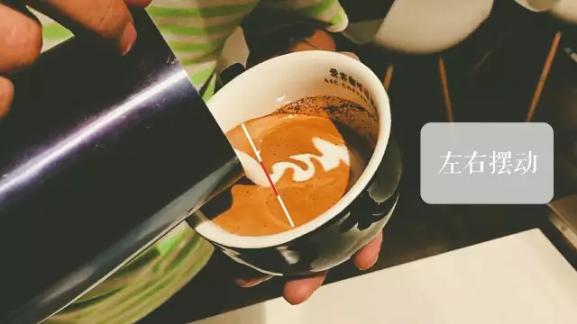 注入蒸汽牛奶的同時開始晃動拉花缸