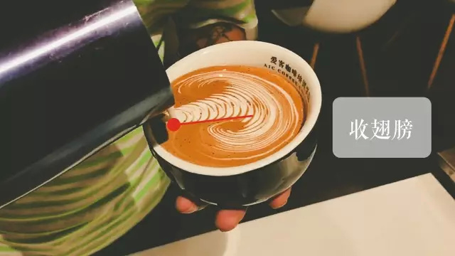 左右晃動手中的拉花缸約6~7次形成紋路,直至第一個天鵝圓型底部打開。