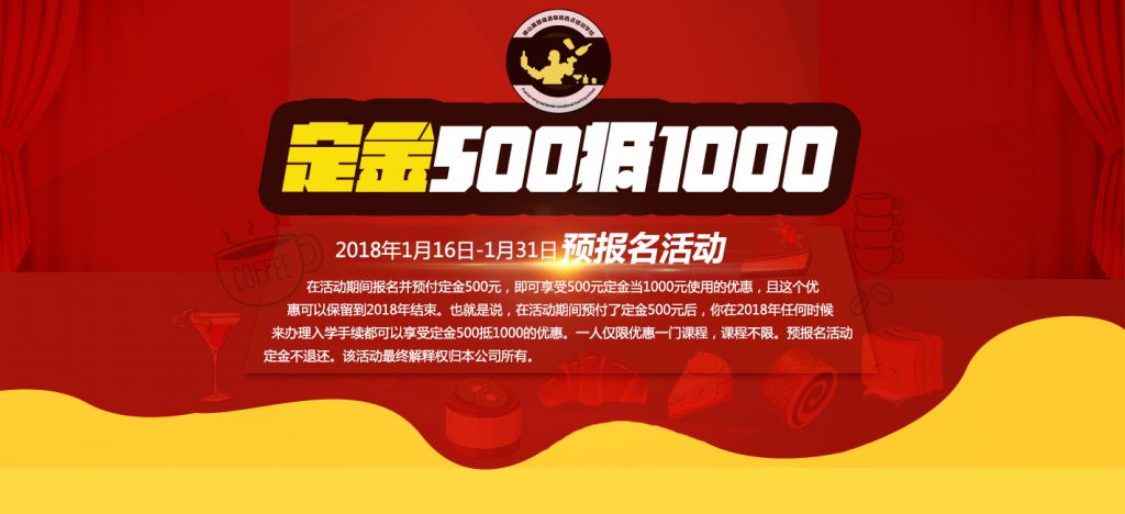 3、享受政策:預付500元定金抵1000元,實際來校辦理入學手續時,如學校有相關優惠活動,不可同時享受。一人僅優惠一門課程。