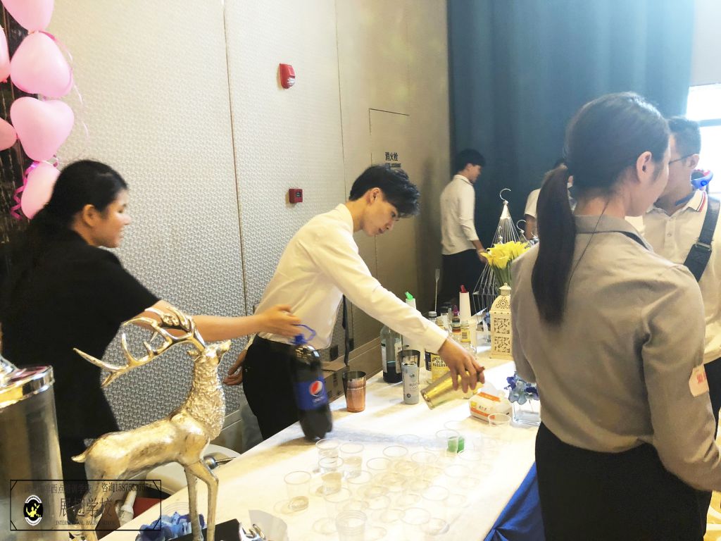 2018年8月18日下午,“遇見玫瑰遇見你”龍華街道第五屆單身青年交友聯誼活動圓滿舉辦,佛山展翅咖啡調酒西點培訓學校的調酒師學員受邀為活動現場調制提供“愛之酒”,用浪漫靚麗的雞尾酒為現場為愛捧心的青年男女助力!