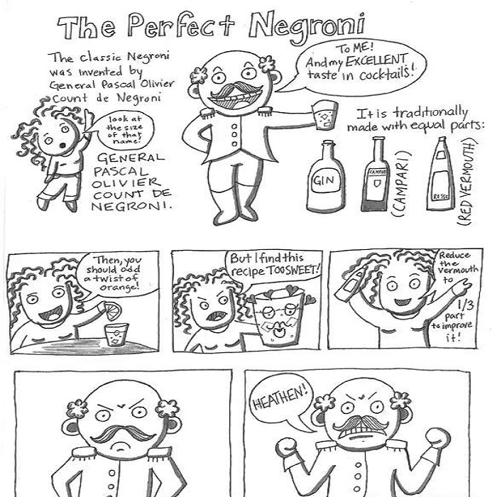 其次,Negroni將Campari的苦和甜味美思的甜,金酒的烈與香完美的進(jìn)行了平衡。Gary Regan在2003年的The Joy of Mixology一書中寫道“不用測量這三款酒的比例,他們已經(jīng)達(dá)到了最好的平衡...這三種等量的成分是達(dá)到平衡的必要條件。”有一些人錯(cuò)誤的用shake的手法來調(diào)制雞尾酒,或者用檸檬皮來做裝飾,這些都是不可取的,甚至是一種罪過。