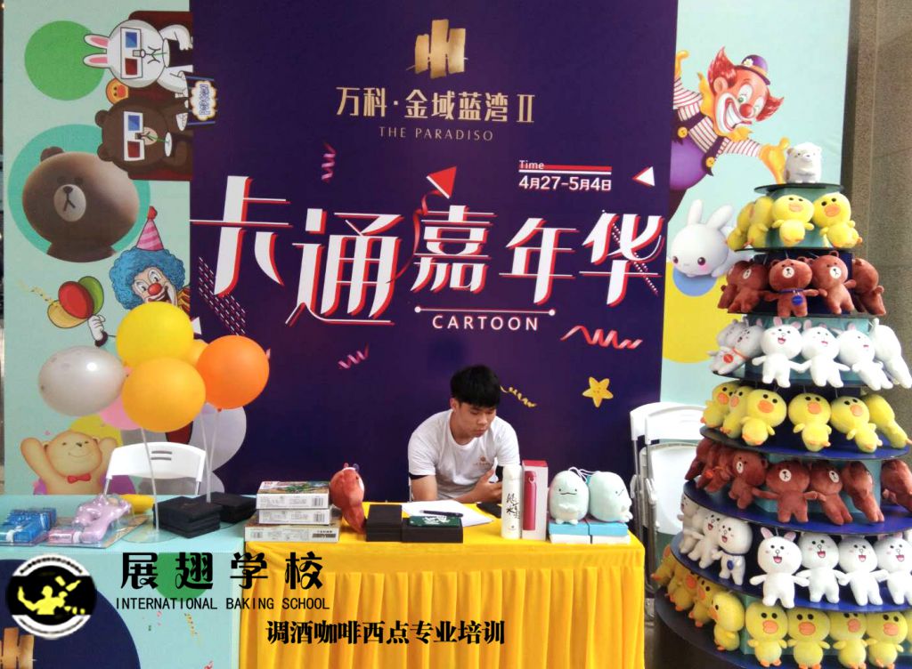 2019年4月27日,萬科.金域藍(lán)灣卡通嘉年華,展翅調(diào)酒咖啡西點培訓(xùn)學(xué)校的咖啡師被邀請到現(xiàn)場咖啡拉花表演