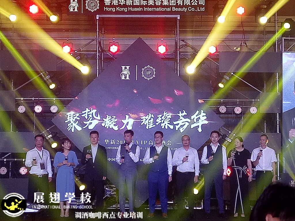 2019年6月22日,香港華新國際美容集團有限公司,在廣州花都富力空港假日酒店舉行年度VIP論壇,晚會上特邀請了佛山展翅調酒咖啡培訓學校的調酒師到現場調制雞尾酒