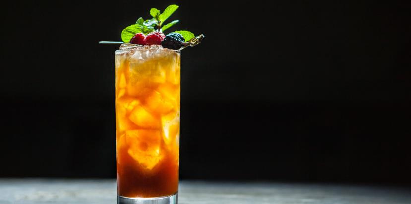 3.濾掉冰塊,將酒液倒入冰鎮過的長飲杯,加入碎冰至全滿。