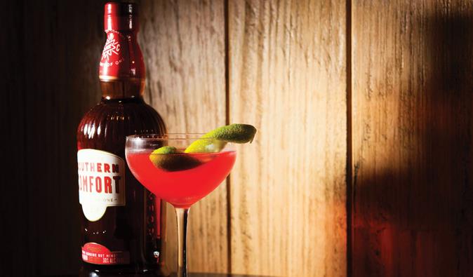 3.濾掉冰塊,將酒液倒入冰鎮過的馬丁尼杯。