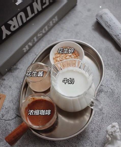 花生醬/花生碎/濃縮意式咖啡/熱牛奶