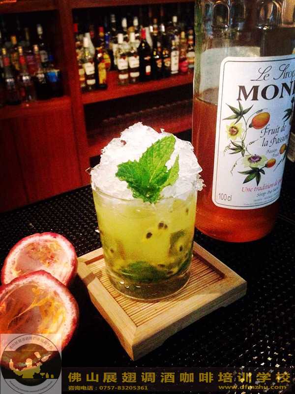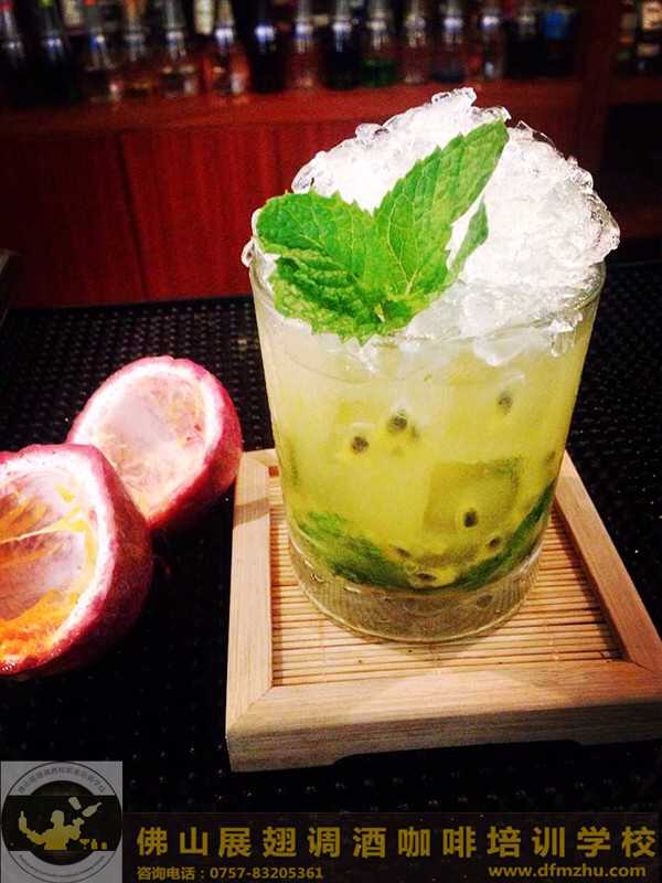 百香果Mojito雞尾酒,并不濃烈,但是喝一杯下去,臉上會泛起紅暈,象少女的羞澀。味道很清新,含有百香果之味、有一點青澀、有點甜蜜,象單純的初戀。它是我調制第一種雞尾酒,它像青檸的初戀。用料:百加得45ml、青檸:各1/4個、百香果糖漿:0.5ml,蘇打水:150ml,薄荷葉:1枝碎冰:1杯