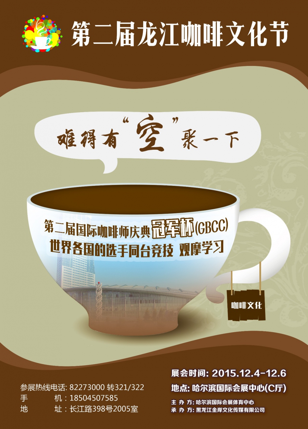 2015年12月4日至6日在哈爾濱國際會展體育中心 “2015中國龍江咖啡文化節”即將盛大開幕,咖啡展組委會已全面啟動招商、招展工作,展位開始全面接受預訂!