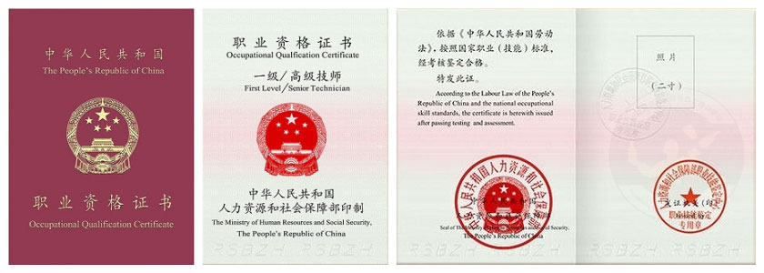 國家職業資格一級(高級技師樣板證書)